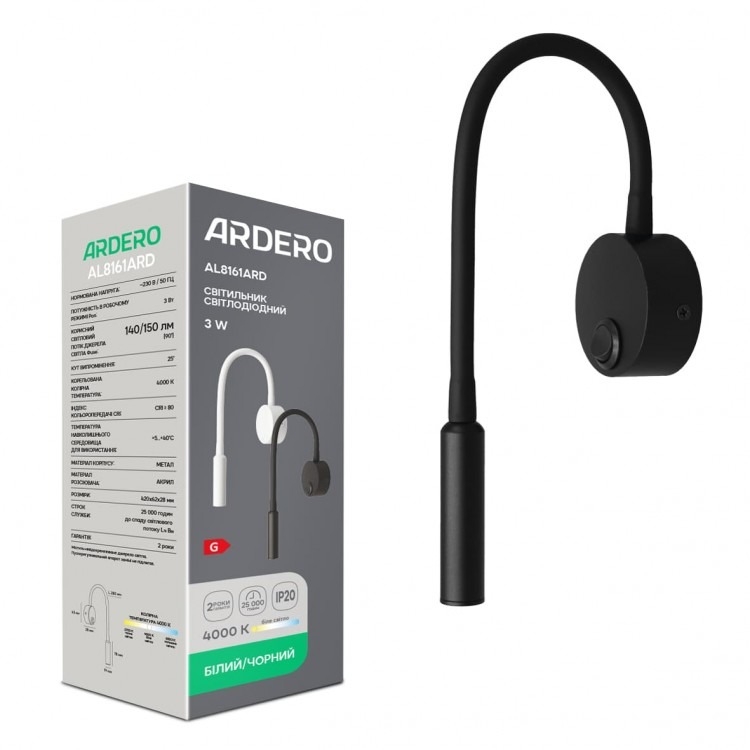 Бра світлодіодне Ardero 3Вт чорний корпус 420*62*28 мм AL8161ARD