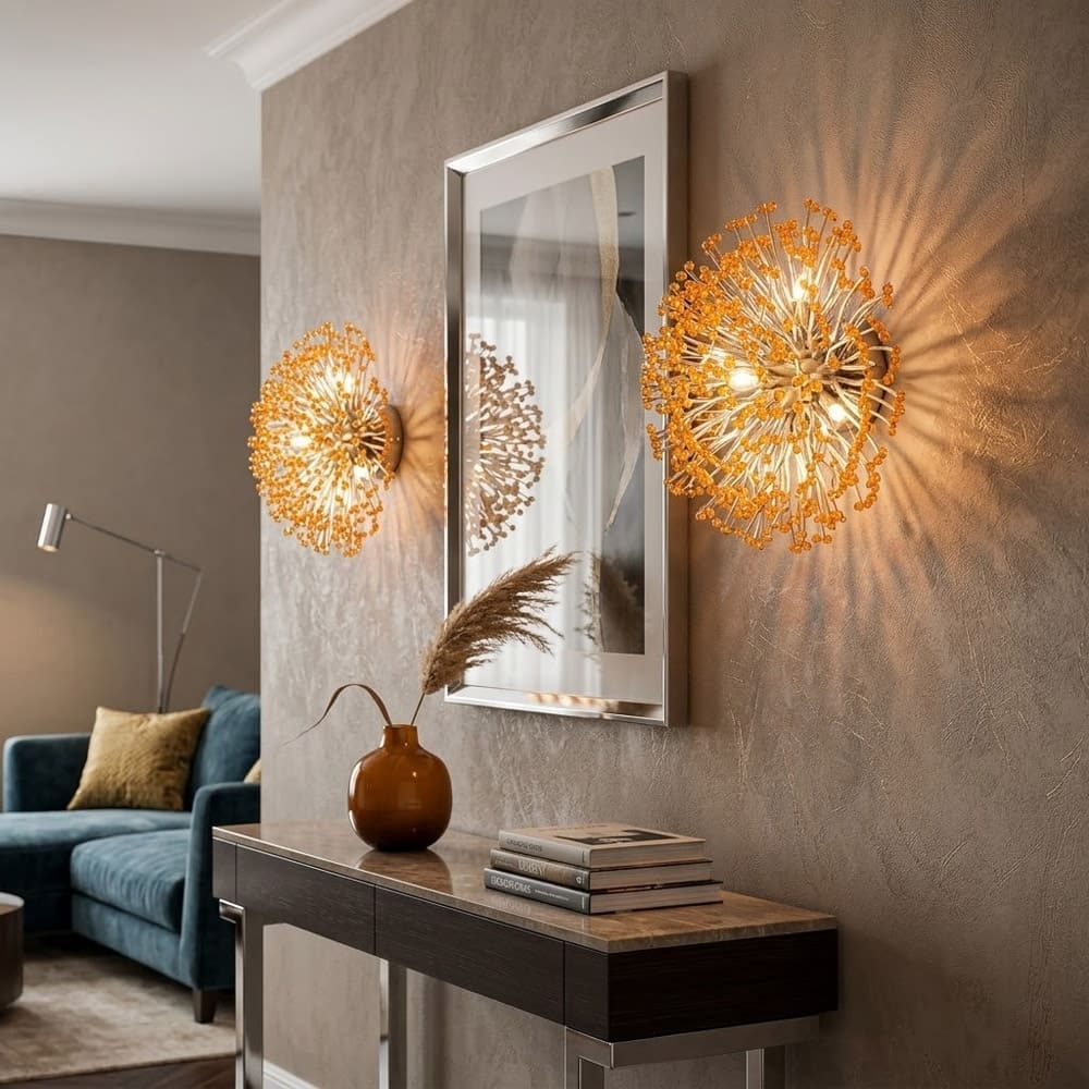 Декоративне бра-квітка у сатиновому корпусі із оранжевими намистинками Ø 40 см