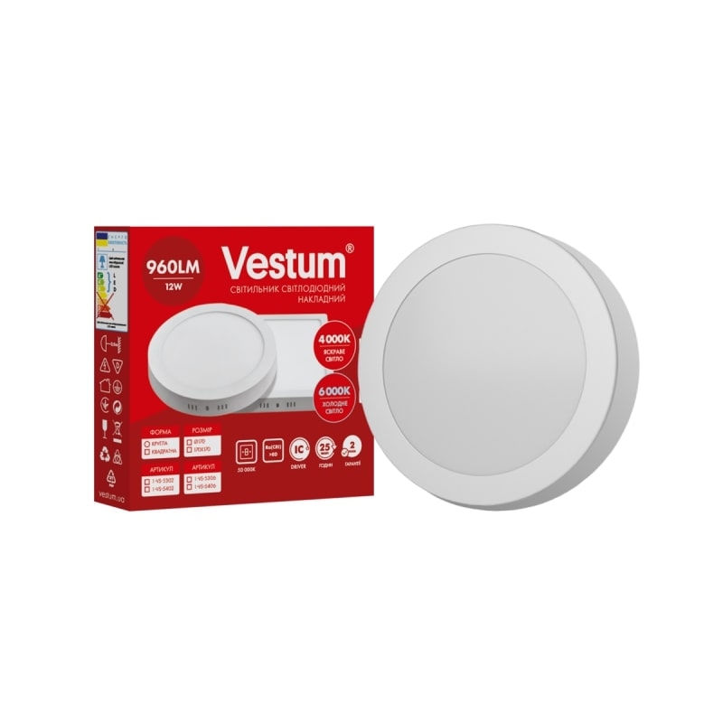 Круглий світлодіодний накладний світильник Vestum 12W 6000K 220V 1-VS-5306