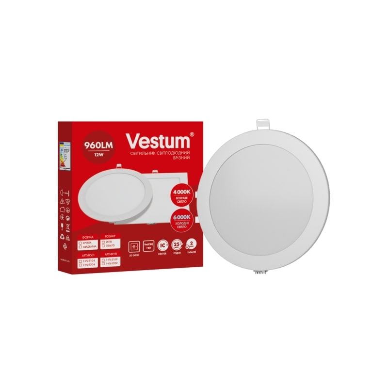 Круглий світлодіодний врізний світильник Vestum 12W 6000K 220V 1-VS-5109