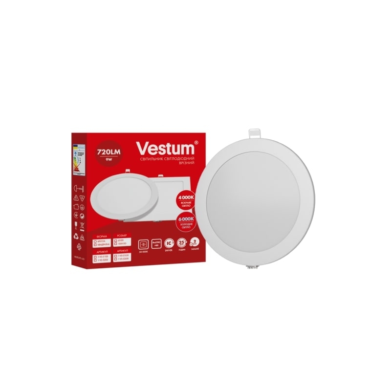 Круглий світлодіодний врізний світильник Vestum 9W 6000K 220V 1-VS-5108