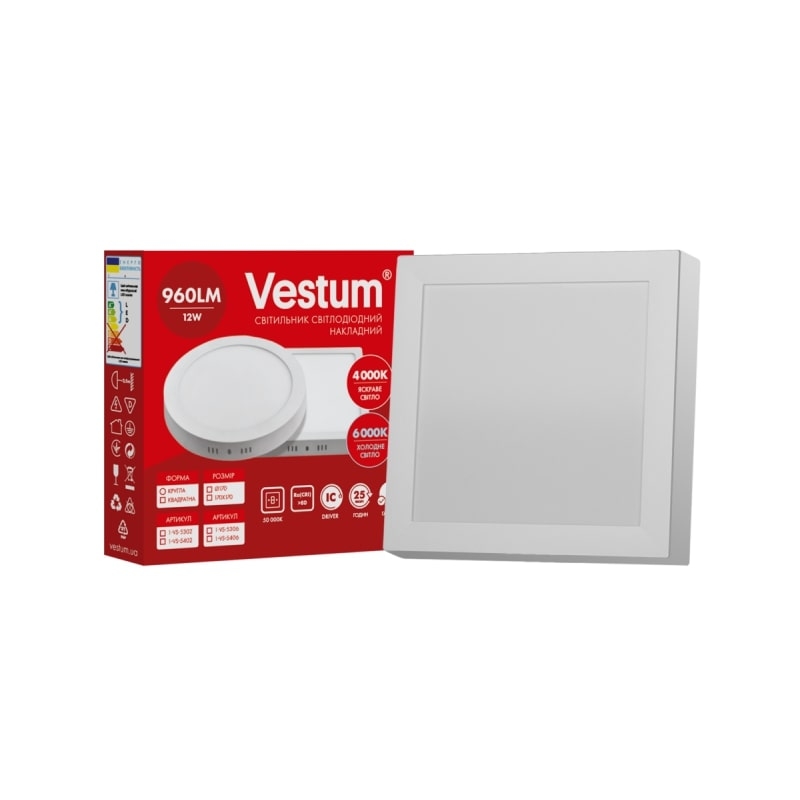 Квадратний світлодіодний накладний світильник Vestum12W 6000K 220V 1-VS-5406