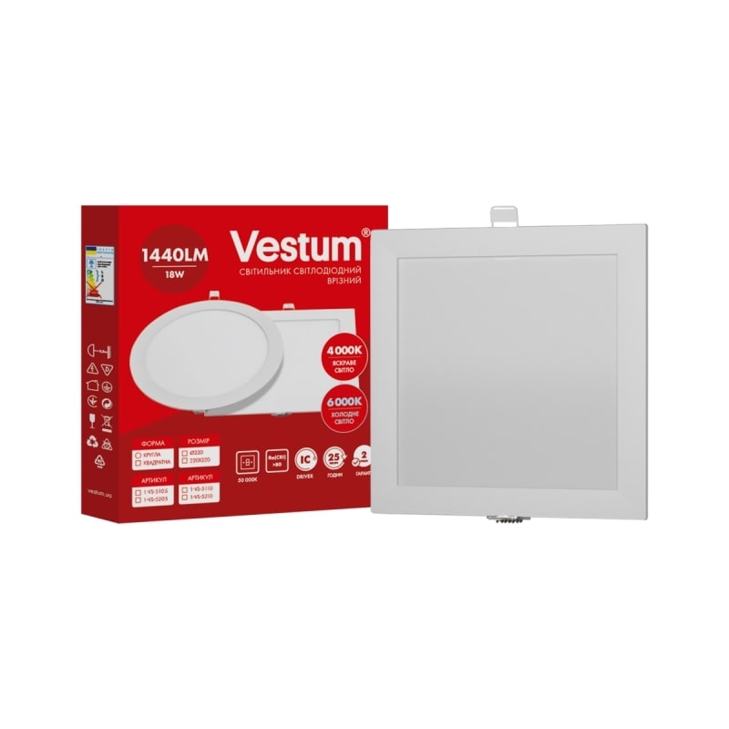 Квадратний світлодіодний врізний світильник Vestum 18W 6000K 220V 1-VS-5210