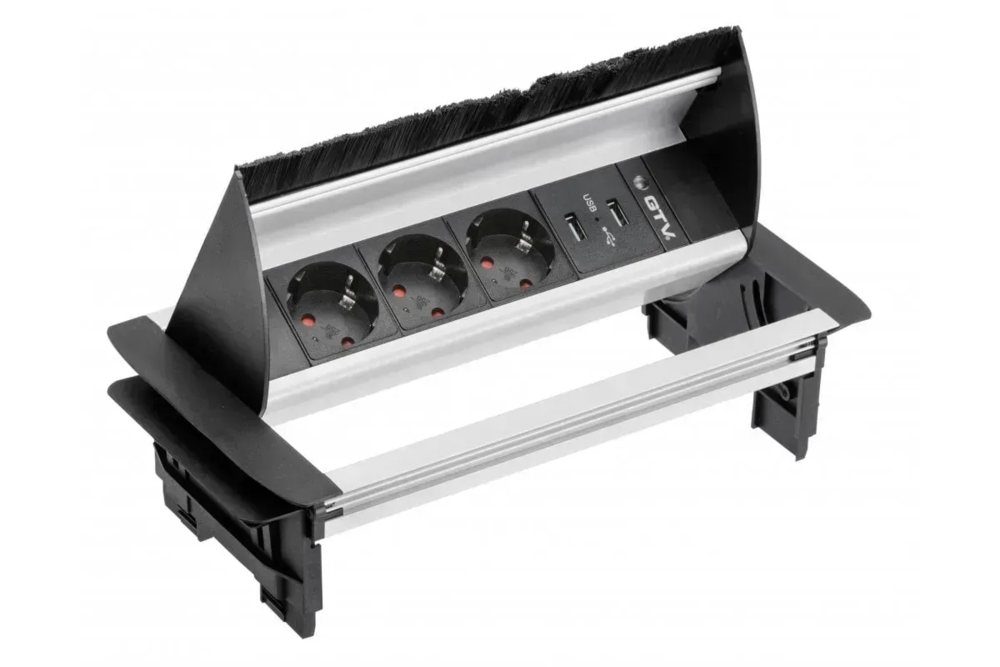 Подовжувач настільний GTV без нижнього корпусу 3x гн. schucko, 2xUSB C, інокс, з кабелем 1,5 метра та вилкою AE-PBC3GS2U-53BKS