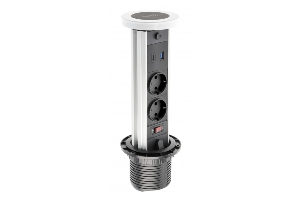Подовжувач вбудований GTV CAMINO, індукційна зарядка, 2x роз. schuko, USB A+C 10W, 1,5 м, білий AE-BPW2SCAM-10