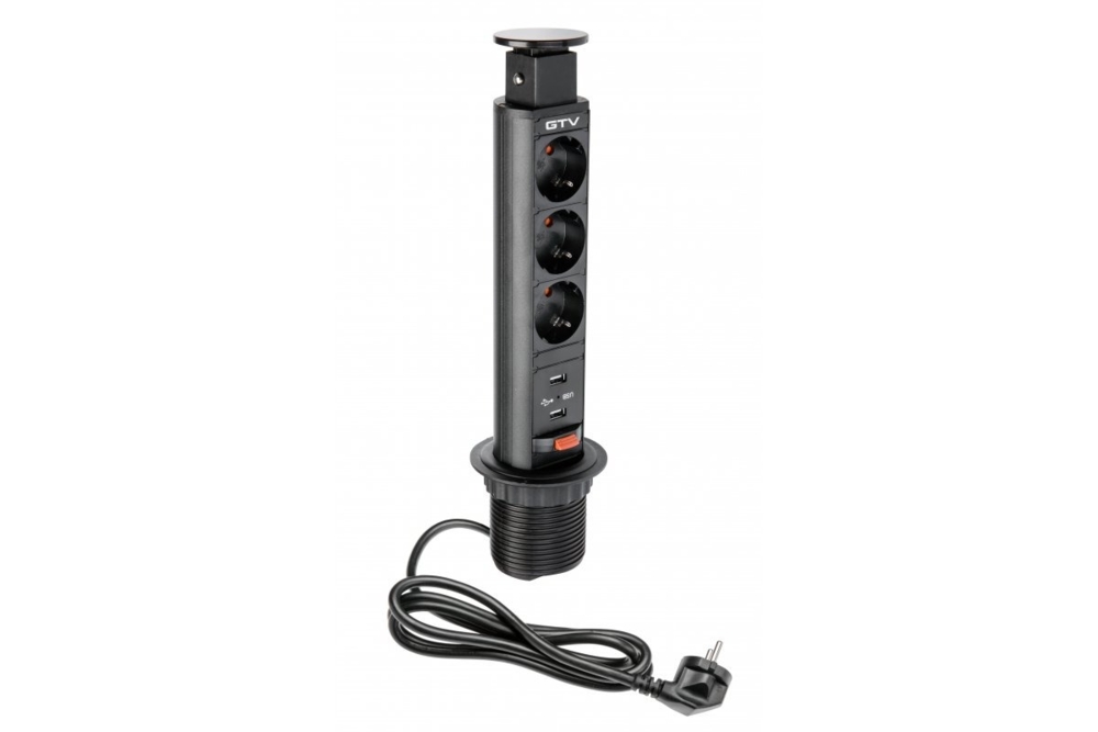 Подовжувач врізний в стіл GTV, 60мм, 3 x гнізда SCHUCKO, 2xUSB 2,1A 5V, чорний AE-BPW3S60U-20