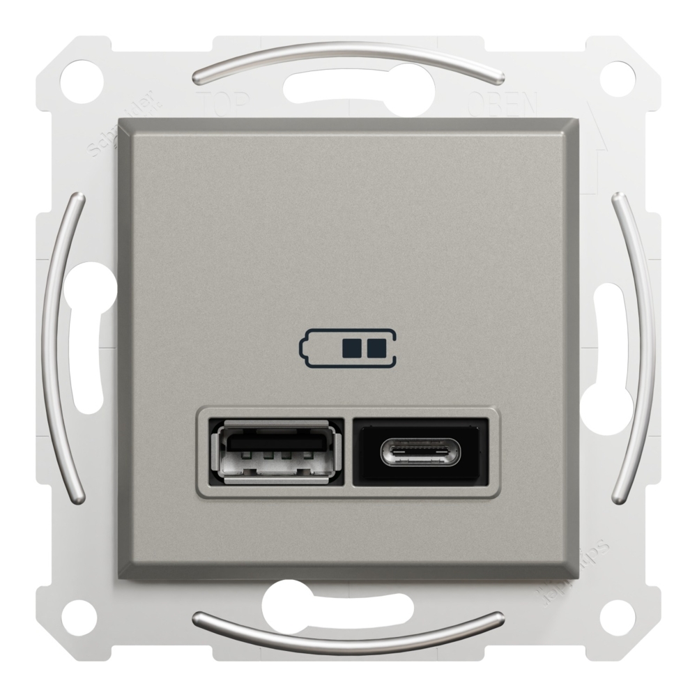 Розетка Asfora USB, 2 виходи, тип А+С 2,4А, Бронза (без рамки) EPH2700369