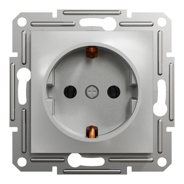 Розетка із заземленням Asfora 1-а, Алюміній (без рамки) EPH2900161