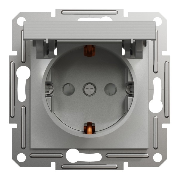 Розетка із заземленням Asfora 1-а з кришкою, Алюміній (без рамки) EPH3100161