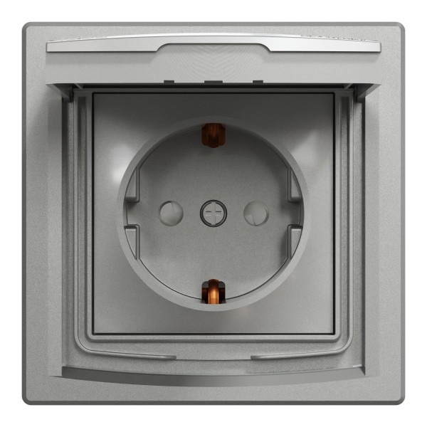 Розетка із заземленням Asfora 1-а з кришкою та шторками, IP44, Алюміній EPH3100361