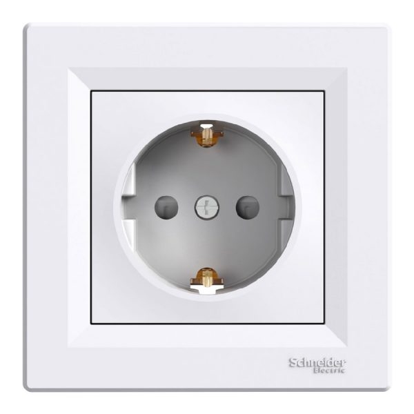 Розетка із заземленням Asfora 1-а з захисними шторками, Біла EPH2900221