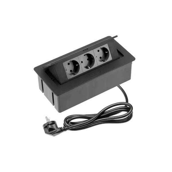 Розетка меблева GTV SOFT 3xSchuko, кабель живлення з вилкою, чорна AE-PBSC3GS-20NN