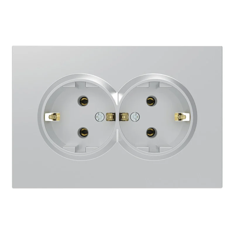Розетка подвійна із заземленням Ardero Soft механізм 16А срібло ER122-S