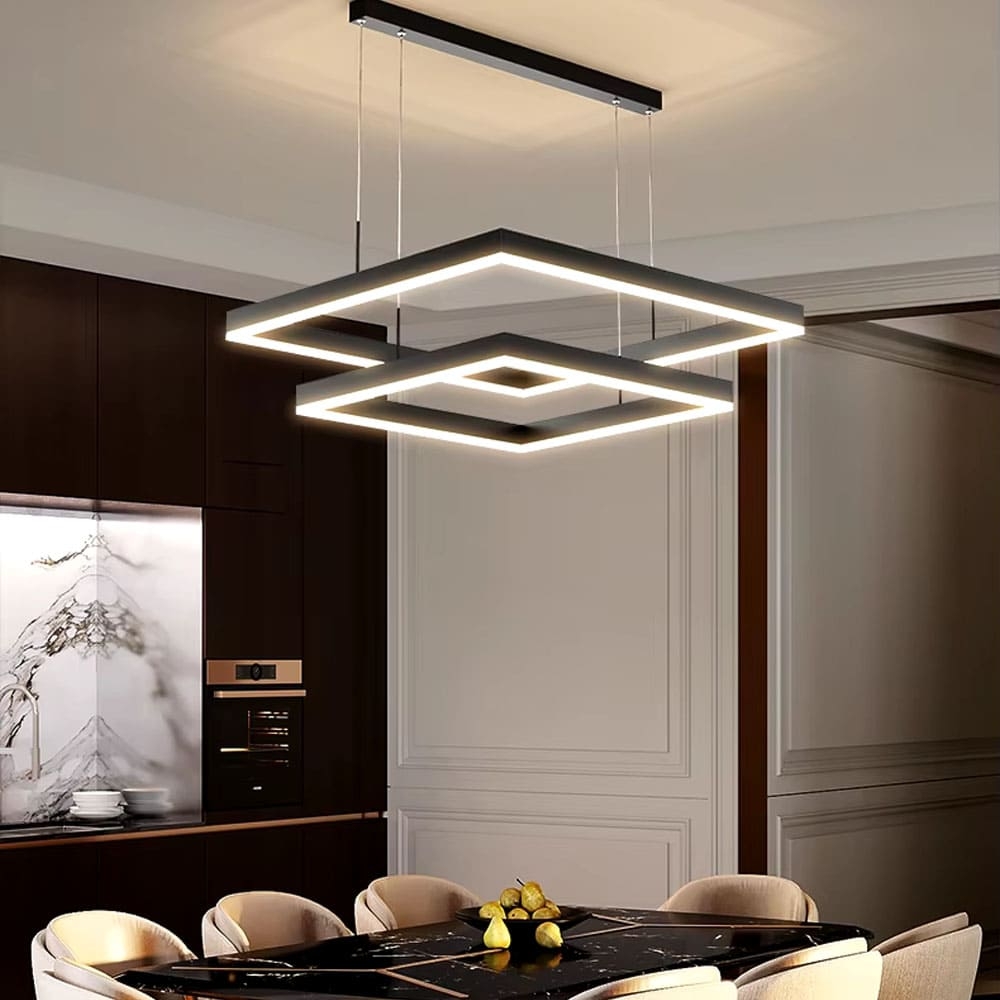 Черная люстра с двумя подвесными квадратами 40 и 60 см MJ223-800+600 BK