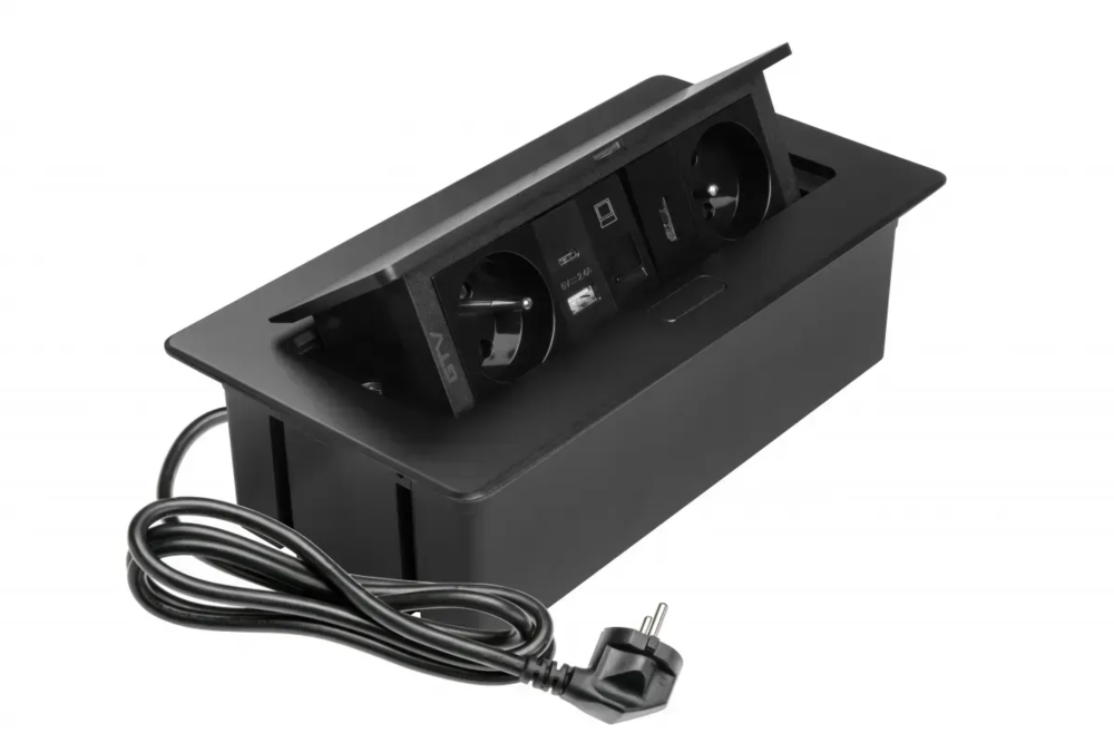 AE-PBSURH2GS-20 Мебельная розетка GTV MULTISOFT, 2хSHUKO, USB A+C, RJ45, HDMI кабель 1.5м, черный