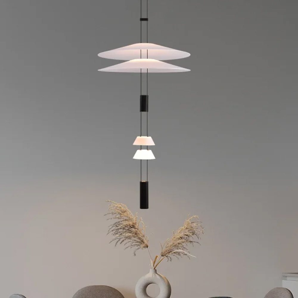 Модульный светильник с черным основанием и четырьмя белыми пластинами Ø50+50+12+12 см