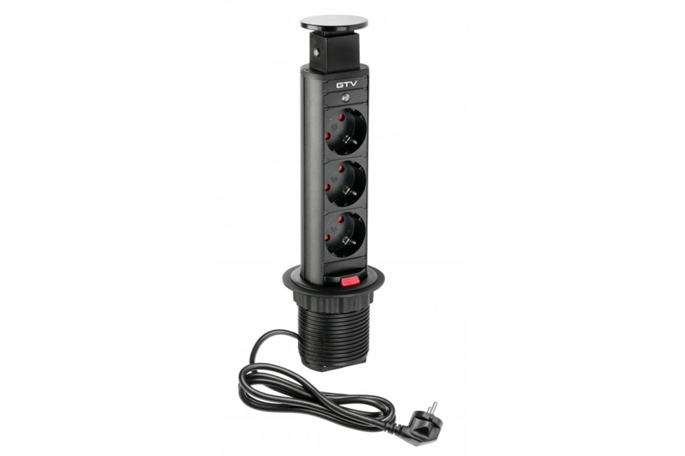 Удлинитель GTV выдвижной врезной скрытый d60mm, 3 гнезда schucko черный AE-BPW3S60-20