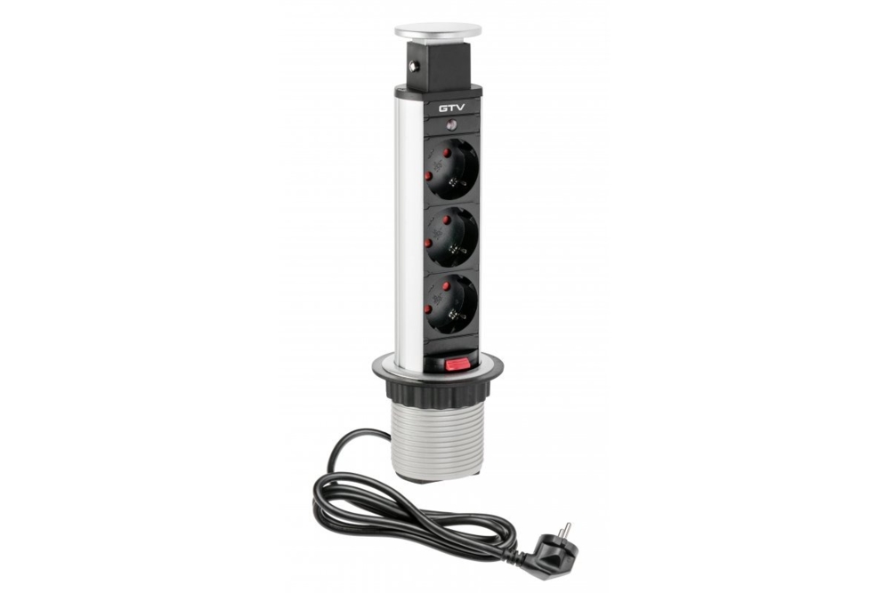 Удлинитель GTV выдвижной врезной скрытый d60mm, 3 гнезда schucko, серебряный AE-BPW3S60-80
