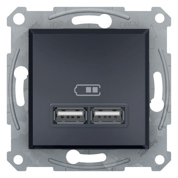 EPH2700271 Розетка Asfora USB, 2 выхода 2.0, 5V-DC, макс 2.1A, Антрацит (без рамки)