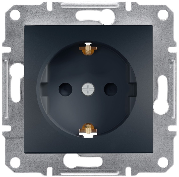EPH2900271 Розетка с заземлением Asfora 1-я с защитными шторками, Антрацит
