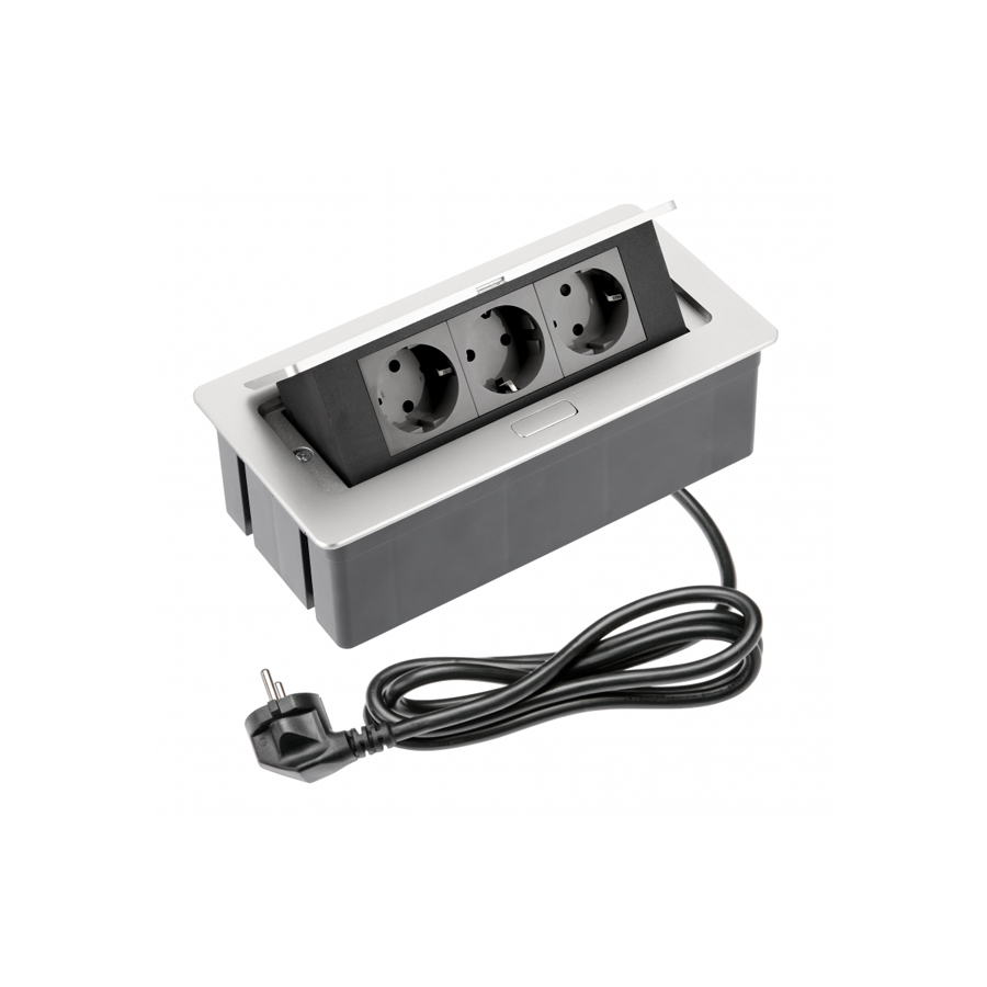 AE-PBSC3GS-53N Розетка мебельная GTV SOFT 3xSchuko, кабель питания с вилкой, алюминий