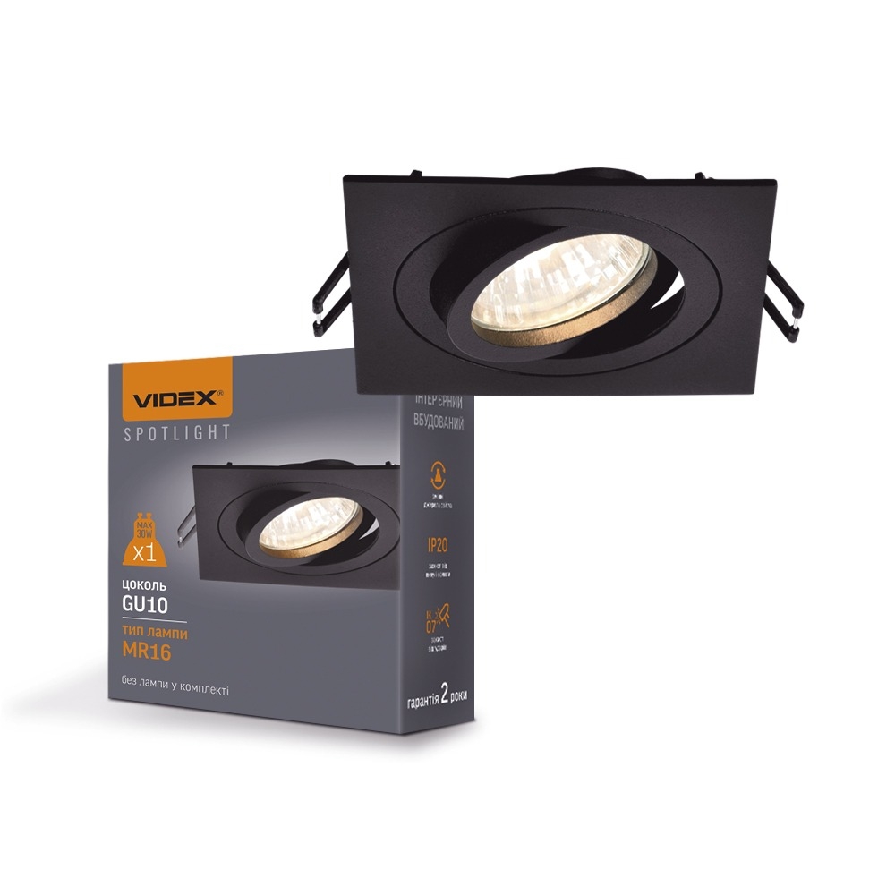 Светильник VIDEX под лампу GU10 врезной Квадрат Черный 9,2х9,2х2,5 см VL-SPF08S-B