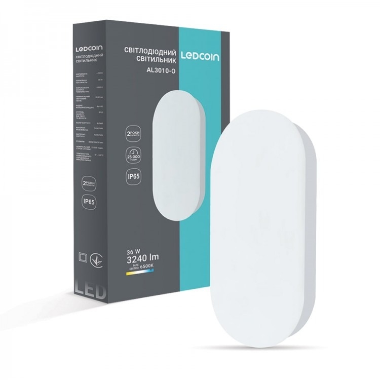 Світлодіодний накладний світильник Ledcoin 36 Вт 6500K овал 300*150*35 мм AL3010-O